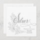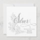 Lovely invitation for the silver anniversary couple with their 25th wedding anniversary date and the couple's name all in typography of silver and black text on white with event details on the back.