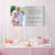 A banner celebrating a 25th wedding anniversary. An elegant faux silver coloured background. Personalise and add your own photo of the happy couple. The text: The names is written with a black modern hand lettered style script. Tempates for names and a date. Can be used as a party welcome sign, party wall decoration and a keepsake.