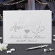 Celebrate a quarter of a century of love with this stunning 25th Anniversary Guest Book. Featuring a timeless clean white cover adorned with elegant real silver foil pressed calligraphy and a delicate glitter-effect heart, this book is designed to capture every heartfelt message from your guests. The template wording on the front and spine is fully customizable with the couple’s names and their milestone dates, making it a truly unique keepsake. Whether you’re hosting a formal gala or an intimate family gathering, this custom silver anniversary guestbook adds a touch of sophisticated charm to your welcome table.
