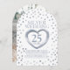 Silver coloured confetti dots with silver heart effect 25 year wedding anniversary invitations. Simple modern heart and random silver look confetti dots 25th wedding anniversary design. Other matching silver wedding items are available or can be created by request. © Original graphics and design by Sarah Trett for www.mylittleedenweddings.com on zazzle.