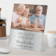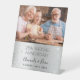 Celebrating a 25th silver wedding anniversary. A faux silver metallic looking background, decorated with faux glitter dust. Personalise and add your own high quality photo of the happy couple. The text: The names is written with a black modern hand lettered style script. Tempates for the names and a date.