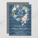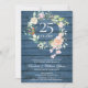 Featuring a delicate watercolor floral greenery garland on a blue rustic wood panels background, this chic botanical 25th wedding anniversary invitation can be personalised with your special silver anniversary information. The reverse features a matching floral garland framing your anniversary dates in elegant white text on a silver background. Designed by Thisisnotme©