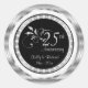 25th Silver Wedding Anniversary - White Damask Classic Round Sticker