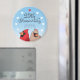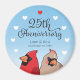 This personalised magnet makes a cheery gift for a couple celebrating a 25 year wedding anniversary! A pair of cardinal birds pops up below elegant script text that reads, “25th Anniversary” and two names and a wedding date which can be customised. Hearts form a circular border around the blue sky design.