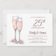 Raise a glass with us as we toast to our 25th wedding anniversary. This elegant invitation, featuring two sparkling pink champagne glasses, is the perfect way to invite your friends and family to join in the joy, laughter, and cherished memories. You can effortlessly add all the necessary details to the customisable text. Choose from various paper types and corner styles to make your invitations unique. Additionally, you have the option to download the invitation if you prefer a digital format.