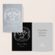 An elegant typographic design in silver, and black. The template is captioned with: 25th Wedding Anniversary, the years of matrimony and the names Jesse & Chris. The interior text is; Congratulations! First the silver, then the gold! Fully editable.