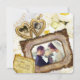 Create your own commemorative invite with this beautiful design featuring an antique gold, heart-shaped locket for your individual photos, and a gorgeous baroque picture frame for your couple or group photo. A vintage scroll paper holds your custom names and event. Replace the sample photos and text with your own for a personalised design. Perfect for wedding anniversary celebrations.