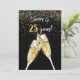Champagne toast on black with falling confetti for 25th wedding anniversary party invite.