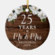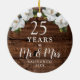25th Wedding Anniversary Personalised Woodgrain Ceramic Ornament. Personalise with your custom information on both front and back.