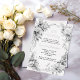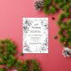A white background. Decorated with florals and a faux silver ribbon. Personalise and add a name and details.