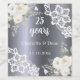 Labels for 25th wedding anniversary, silve wedding. A faux dark silver looking background decorated with white florals, roses and lace.