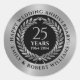 Silver laurel wreath on silver and black customisable 25th wedding anniversary template designs. You can easily customise your names and dates of the anniversary.