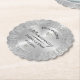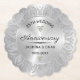 Silver tones faux metallic look background with a silver glitter floral mandala ornate circle frame. 25th wedding Anniversary template.