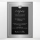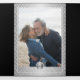 Classy elegant luxurious faux metallic silver 25 years wedding anniversary trifold all in one invitation template with custom photo, rsvp card, QR CODE to website and guest direction accommodation information featuring geometric shapes and diamond pattern with a white modern hand lettered typography script on a solid black background. +++++ Personalise it with your picture, details and couple's names initials monogram! ++++++++ Suitable for luxury winter indoor elegant classic glamourous formal black-tie any season wedding anniversaries or vow renewal.