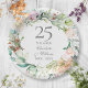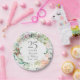 25th Wedding Anniversary Silver Watercolor Floral Paper Plate