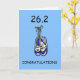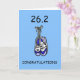 A pair of blue and white training shoes tied together by their laces, accompanied by the words '26.2 Congratulations'. The image has a blue colored background.