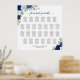 Presenting a stunning 26-table wedding seating chart that effortlessly combines rustic charm and elegant style. Adorned with a gorgeous hand-painted watercolor floral design, featuring lovely roses and lush garden greenery in shades of dusty blue, navy, and indigo. Sprinkled throughout are delightful sprigs of eucalyptus and lavender flowers, accompanied by a sophisticated calligraphy title. With seating arrangements for 260 guests, and 10 seats per table, this seating chart is both practical and visually appealing, making it easy for guests to find their designated table. Add a touch of refinement to your wedding reception with this charming seating chart that captures the beauty and elegance of your special day.