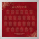 This simple yet elegant wedding seating chart features a classy, sophisticated design with gold text on a marbled crimson red background and ornate golden faux foil filigree in the corners. The title is written in fancy script calligraphy and there is room for the names of the couple and wedding date at the bottom. There is space for 260 guests at 26 tables (10 seats per table). Wonderful way to add elegance and style to your wedding reception while helping your guests find their tables.