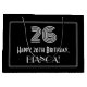 This 1920s/1930s style inspired vintage look birthday-themed giftbag design features a large art deco look inspired number "26", the message "Happy 26th Birthday,", a customisable name, and a border pattern consisting of thin lines. It also has a black-coloured background. A gift bag like this could be used when wrapping a birthday present or gift being given to somebody who is celebrating their twenty sixth birthday. [~Z0000497]