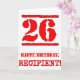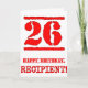 This fun birthday themed greeting card design features a large red number “26” having a rubber stamp inspired look, plus the birthday greeting message “HAPPY BIRTHDAY,” and a personalised name on the front. The inside has a customisable birthday greeting message, or could perhaps be cleared and left blank if a message is to be written by hand instead. A fun editable birthday greeting card like this might be a fun way to deliver birthday greetings to somebody who is celebrating their twenty-sixth birthday. [~Z0000524]