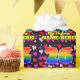 This happy and cheerful birthday-themed wrapping paper design features a large number “26” with a rainbow spectrum gradient inspired pattern, along with the message “Happy 26th Birthday,”, and a custom name. The background features a pattern of pink, purple, and red heart shapes of various sizes. Wrapping paper like this might be used when wrapping gifts being given to somebody in celebration of their twenty sixth birthday. [~Z0000549]