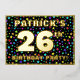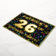 The front of this joyful twenty-sixth birthday party/celebration foil invitation card design features a customisable name, a large number “26th”, the message “BIRTHDAY PARTY!”, and a border. The background of the front features an exciting, colourful pattern of star shapes. The back features personalised details about the event, such as the date, time, place/venue, and any other information that may be relevant. Personalised invitations like these might be a fun way to invite guests/attendees to a birthday party/gathering being held in celebration of somebody’s 26th birthday. [~Z0000600]