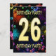 Add a name to customise this unique party invitation. 26th birthday party invitation with fireworks and bubbles. Add your details inside to create a perfect fun invite. Light up the sky with these glorious fireworks. An invitation to a birthday party that has style and loads of fun.