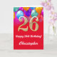 26th Birthday Red and Gold Colourful Balloons Birthday Card. For further customisation, please click the "Customise it" button and use our design tool to modify this template.