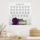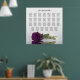 This beautiful 27 table wedding seating chart features a photo of a single long stemmed plum purple or eggplant coloured rose lying on its side reflecting in water with waves and ripples. The title reads "please find your table" in elegant lacy script calligraphy. There is space for the couples' names and wedding date. This chart has table assignments for 270 guests at the traditional seating arrangement of 10 people per table.