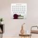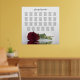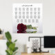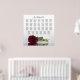 This beautiful 27 table wedding seating chart features a photo of a single long stemmed burgundy, maroon, or wine red coloured rose lying on its side reflecting in water with waves and ripples. The title reads "please find your table" in elegant lacy script calligraphy. There is space for the couples' names and wedding date. This chart has table assignments for 270 guests at the traditional seating arrangement of 10 people per table.