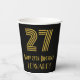 This vintage style and 1920s-1930s style inspired birthday-themed paper cup design features a large art deco inspired look number “27”, in addition to the birthday greeting message “Happy 27th Birthday,” and a custom name. It also has a black-coloured background. 1920s-1930s style inspired paper cups like this might be fun to use at a birthday party in honour of somebody’s 27th birthday. [~Z0000546]