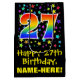 This colourful, exciting, and fun birthday giftbag design features a large number "27" with a rainbow spectrum gradient inspired pattern, along with the message "Happy 27th Birthday,", and an editable recipient name. It also has a colourful background pattern featuring star shapes of various sizes. A birthday themed gift-bag like this might be a fun way to wrap a gift or present being given to somebody who is celebrating their 27th birthday. [~Z0000510]