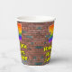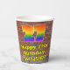 This vibrant and exciting urban street art and graffiti themed birthday paper cup design features a large number “27” with a colourful rainbow spectrum gradient inspired pattern, along with the message “Happy 27th Birthday,”, and an editable name. The background features a brick wall pattern. Vibrant, colourful paper cups like this might be fun to use at a birthday party being held to celebrate somebody’s 27th birthday. [~Z0000543]