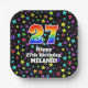 27th Birthday: Fun Stars Pattern and Rainbow “27” Paper Plate