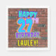 This fun birthday-themed paper napkin design features the message “HAPPY 27TH BIRTHDAY,” having a colourful, vibrant, urban street art and graffiti inspired look, along with a personalised recipient name. The background features a brick wall inspired pattern. Birthday themed paper napkins like this might be used at a party celebrating somebody’s 27th birthday. [~Z0000534]