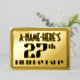 The front of this 1920s-1930s era style inspired twenty-seventh birthday party foil invitation card design features a custom name, an art deco style inspired number “27th”, the message “BIRTHDAY PARTY”, and a multi-line border. The back features personalised details about the event, such as the date, time, location/venue, and any other information that may be important. Luxurious, stylish, personalised invitations like these might be used to invite attendees/guests to a birthday party being held to celebrate somebody’s 27th birthday. [~Z0000606]