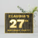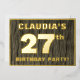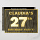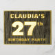 The front of this bold twenty-seventh birthday celebration/party foil invitation card features a personalised name, a large number “27th”, the message “BIRTHDAY PARTY!”, and a border, all in foil. The background of the front features a rustic, yet sophisticated, faux wood grain appearance inspired pattern. The back features personalised details about the event, such as the date, time, location/venue, and any other useful information. Customisable invitations like these might be used to invite guests to a birthday gathering/party being held to honour somebody’s 27th birthday. [~Z0000598]