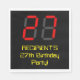 This geeky and fun birthday themed paper napkin design features a large number "27" with a red seven segment digital display style look, along with a customisable name and the message "27th Birthday Party!" in nerdy computing-inspired yellow text, on a black coloured background. Birthday themed paper napkins like this might be fun to use at a party being held to celebrate somebody’s twenty seventh birthday. [~Z0000388]