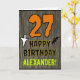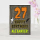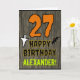 The front of this scary and spooky Halloween birthday themed greeting card design features a large number "27". It also features the message "HAPPY BIRTHDAY,", plus a customisable name. There are also depictions of a ghost and a bat on the front. The inside features a custom birthday greeting message, or could perhaps be cleared and left blank if a message is to be written by hand instead. A custom birthday card like this might be a fun way to send birthday wishes to somebody who is celebrating their twenty seventh birthday and who was also born on Halloween (October 31st). [~Z0000410]