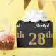 This luxurious, stylish, and elegant birthday-themed wrapping paper design features a large ordinal number “28th” having a faux/imitation gold-like appearance, plus the birthday greeting message “Happy 28th Birthday,” and an editable recipient name in a script-style font. The background is coloured black. Luxurious wrapping paper like this might be used when wrapping presents being given to somebody in celebration of their twenty eighth birthday. [~Z0000515]