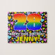 This eye-catching and exciting birthday themed jigsaw puzzle design features a large number “28” with a multicolored rainbow spectrum inspired gradient pattern, along with the message “HAPPY 28th BIRTHDAY,”, and an editable recipient name. The background has a cheerful pattern of loving heart shapes with various colours and sizes. A vibrant, editable birthday puzzle like this might be used to celebrate somebody’s twenty-eighth birthday. [~Z0000611]