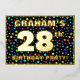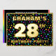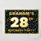 The front of this exciting and eye-catching twenty-eighth birthday party/celebration foil invitation card design features an editable name, a large number “28th”, the message “BIRTHDAY PARTY!”, and a border. The background of the front features a fun, colourful pattern of star shapes. The back features personalised details about the event, such as the date, time, location, and any other useful information. Personalised invitations like these might be a fun way to invite guests to a birthday party/gathering being held to celebrate somebody’s 28th birthday. [~Z0000600]