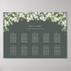 A dark grey green winter wedding seating chart featuring hand painted snowberries and eucalyptus. The template text is set for 10 tables of 10 - all text is fully editable. Alternative layouts and coordinating items are available in my store.