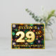 The front of this eye-catching and upbeat twenty-ninth birthday party/celebration foil invitation postcard design features an editable name, a large number “29th”, the message “BIRTHDAY PARTY!”, and a border. The background of the front has a joyful, colourful pattern inspired by bursting celebratory fireworks. The back features personalised details about the event, such as the date, time, place, and any other information that may be important. Personalised invitations like these might be a fun way to invite attendees to a birthday gathering/party being held in celebration of somebody’s 29th birthday. [~Z0000609]