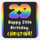 This fun and vibrant birthday-themed square sticker design features a large number “29“ with a colourful rainbow spectrum inspired gradient pattern, along with the message “Happy 29th Birthday,”, and a personalised recipient name. Stickers like these might be given out or used at a party held in celebration of somebody’s 29th birthday, or perhaps used when preparing invitations or gifts/presents for such an event. [~Z0000630]