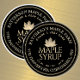 Twenty-Five 2.5" round black and gold waterproof vinyl maple syrup labels. Choose a matte white or transparent border - all colours on matte white will be more vibrant.