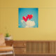 2 Bright Red Heart Shaped balloons Floating Upward Poster