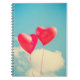 2 Bright Red Heart Shaped balloons Floating Upward Spiral Notebook