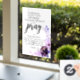 If my people, who are called by My Name, will humble themselves and pray and seek My face and turn from their wicked ways, then I will hear from heaven, and I will forgive their sin and will heal their land. 2 Chronicles 7:14 Bible Scripture Purple Floral Design.