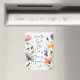 Refrigerator magnet with Christian inspirational quote scripture depicts a simple floral watercolor design with a variety of pink, blue and lavender flowers and greenery. It features an encouraging Bible Verse from 2 Corinthians 3:17, "Where the Spirit of the Lord is there is freedom."
